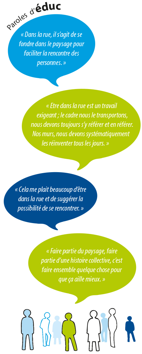 • Un travail de proximité spécifique et original pour aller régulièrement à la rencontre des jeunes et des familles : « le travail de rue », la visite à domicile.